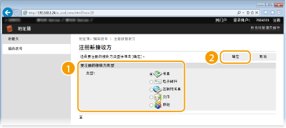 选择 [要注册的接收方类型],然后单击 [确定]。