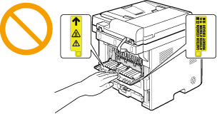 使用期间和刚使用后,本机内部和输出槽的温度会很高。请勿接触这些区域,以免烫伤。另外,刚输出的打印纸张温度可能会很高,因此请小心操作。否则可能会导致烫伤。