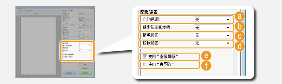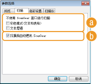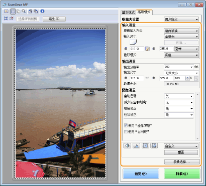 配置使用应用程序扫描文档时应用的设置,以及 ScanGear MF 操作的设置。