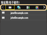 使用地址簿,可以通过从注册的接收方列表中选择来指定接收方,或可以通过含接收人姓名的接收方名称进行搜索来指定接收方。
