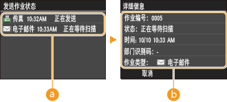 ![]() <发送作业状态>显示正在发送或等待处理文档的列表。
