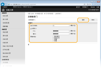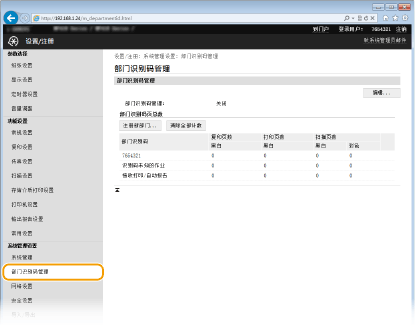 在 [用户管理:] 下选择 [部门 ID 管理]。 |