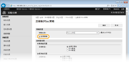 使用操作面板也可从 主页 画面中的 <菜单> 启用或禁用 IPSec 通信。使用IPSec