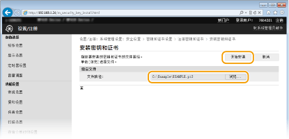 单击 [密钥和证书设置] 安装密钥对,或单击 [CA证书设置] 安装 CA 证书。