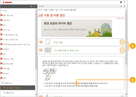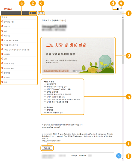 전자설명서를 보는 방법, 검색을 수행하는 방법 및 기타 정보를 표시하려면 클릭합니다.