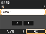 숫자 키를 사용하여 사용자 이름을 입력하고 <확정>을 누릅니다.