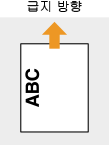 로고가 있는 앞면(문서의 첫 페이지를 인쇄할 면)이 위로 향하도록 용지를 넣습니다.