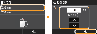/ 또는 숫자 키를 사용하여 <X> 쪽의 길이를 입력하고 <확정>을 누릅니다.![]() |