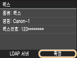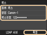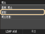 ![]() <검색 시작>을 누를 때 인증 화면이 나타나면 기기의 사용자 이름 및 LDAP 서버에 등록된 비밀번호를 입력하고 <확정>을 누릅니다. LDAP 서버 등록