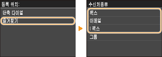 LDAP 서버에 등록되는 선택한 사용자의 사용자 이름, 팩스 번호 또는 이메일 주소가 수신인 필드에 입력됩니다.