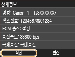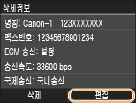 <팩스 설정>에서 <ECM 송신> 및 <송신 속도>를 지정할 수도 있습니다. 하지만, <주소록>에서 지정한 설정은 주소록에 등록한 수신인의 세부 설정에 대해 활성화됩니다. |