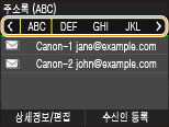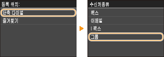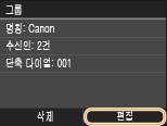 다수의 수신인을 그룹으로 결합할 수 있습니다. 한 그룹에 수신인(이메일인 경우 100명의 수신인)을 최대 299명까지 등록할 수 있습니다. 그룹이 등록된 후에 그룹을 편집하거나 삭제할 수 있습니다.
