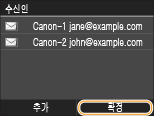 원하는 모든 수신인을 등록할 때까지 7단계부터 9단계까지 반복한 다음 <확정>을 누릅니다.