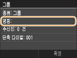 숫자 키를 사용하여 이름을 입력하고 <확정>을 누릅니다.