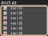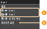 <2 on 1>/<4 on 1>을 사용하면 복사 비율이 자동으로 감소됩니다(화면에 복사 비율이 표시됨).