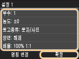 설정 조합을 일단 호출하면, 필요에 따라 복사 설정을 변경할 수도 있습니다.