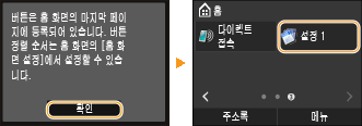 <예>를 선택하면 메시지가 표시됩니다. 메시지를 확인한 다음 <확인>을 누릅니다. 등록한 설정 조합이 홈 화면에 단축 버튼으로 추가됩니다.