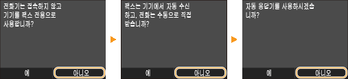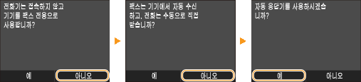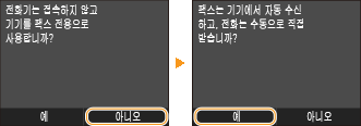 <예> 또는 <아니오>를 눌러 수신 모드를 선택합니다.