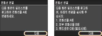 전화선이 연결된 후에 <다음>을 누릅니다.