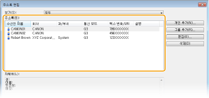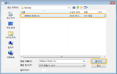 Microsoft Excel과 같은 응용 프로그램에서 작성한 CSV 형식의 주소록 데이터를 기기로 가져오거나, 다른 팩스기기 또는 응용 프로그램에서 사용할 목적으로 주소록 데이터를 내보낼 수 있습니다.