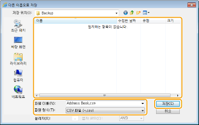 주소록 데이터가 지정된 위치로 내보내집니다.