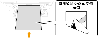 다목적 트레이에 인쇄된 클리닝 용지를 인쇄된 면이 아래를 향하도록 하여 넣습니다.