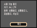 표시된 크기 및 종류의 용지가 기기에 적재되었는지 확인한 후 <확인>를 누릅니다.