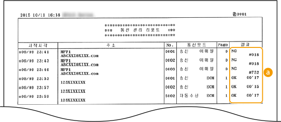에러코드가 나타나는 경우). 이메일의 경우 통신관리 리포트는 기기와 수신인 주소 간이 아니라 기기와 메일 서버 간의 전송 결과를 나타냅니다.