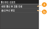 통신 관리 리포트를 인쇄하여 송수신한 문서의 팩스 및 이메일 로그를 확인할 수 있습니다. 40회 전송마다 자동으로 리포트를 인쇄하거나 수동으로 인쇄할 수 있습니다.