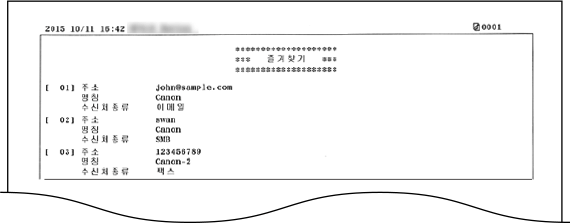 주소록을 인쇄하여 <단축 다이얼>, <즐겨찾기> 및 <그룹 다이얼> 등 주소록에 등록된 수신인 목록을 확인할 수 있습니다.