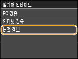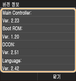 기기의 조작 패널에서 펌웨어의 버전을 확인할 수 있습니다. 펌웨어 업데이트 작업을 완료한 후 업데이트가 올바르게 수행되었는지 확인하십시오. 펌웨어 버전 확인