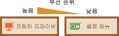 설정 우선 순위인쇄 설정이 프린터 드라이버와 기기의 조작 패널 양쪽에서 모두 지정된 경우 프린터 드라이버의 사양이 조작 패널의 사양보다 우선합니다. 조작 패널의 사양은 PS/PCL 인쇄를 수행하거나 기기의 프린터 드라이버를 사용할 수 없는 UNIX 또는 기타 운영 체제에서 인쇄하는 경우와 같은, 일부 특정한 경우에 효과적입니다.