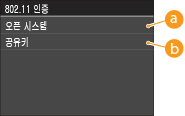 ![]() <오픈 시스템>"오픈 인증"으로도 불리는 오픈 시스템 인증을 설정합니다.