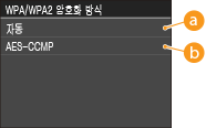 ![]() <자동>무선 라우터의 설정과 일치하도록 기기가 자동으로 AES-CCMP 또는 TKIP를 선택하도록 설정합니다.