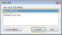 [사용 가능한 포트 종류]에서 [Canon MFNP Port]를 선택하고 [새 포트]를 클릭합니다.