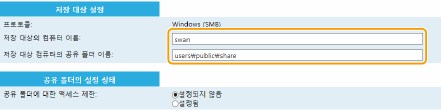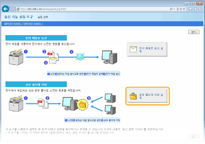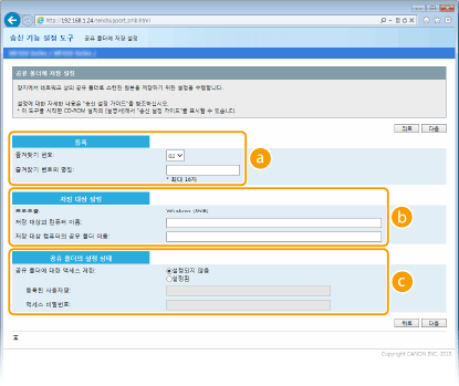 리모트 UI를 사용하여 폴더를 주소록에 등록하는 방법으로 공유 폴더의 위치를 저장 대상으로 지정할 수도 있습니다. 리모트 UI에서 주소록에 수신인 등록