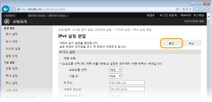 [IPv4 설정]에서 [편집]을 클릭합니다.
