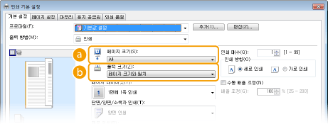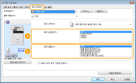 <드라이버 설정 우선 출력>을 <설정>으로 설정하면, 기기의 용지 설정과 상관없이 프린터 드라이버에 지정된 용지 공급원에서 인쇄할 수 있습니다. 드라이버 설정 우선 출력