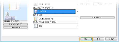 클릭 가능한 UI미리보기 이미지에서 페이지 레이아웃, 제본 위치 등을 쉽게 지정할 수 있습니다. 자세한 내용을 보려면 프린터 드라이버 화면의 [도움말]을 클릭하십시오.