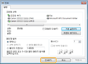 [장치] 누르기 또는 클릭 [인쇄] 본 기기의 프린터 드라이버 [인쇄]를 누르거나 클릭합니다.이 방법으로 인쇄할 경우, 제한된 인쇄 설정만 사용할 수 있습니다.