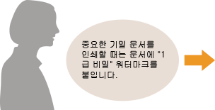 워터마크를 "기밀"로 지정하고 이를 "프로파일"로 등록합니다. 필요 시 이 "프로파일"만 선택하면 됩니다. 자주 사용하는 인쇄 설정 조합 등록