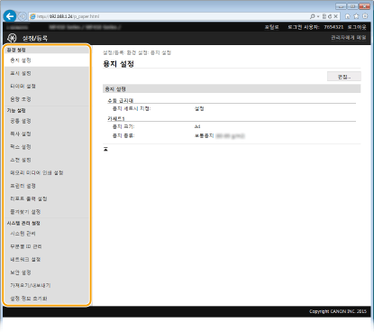 리모트 UI를 사용하여 다양한 기기 설정을 변경할 수 있습니다. 대부분의 설정을 기기에서도 설정할 수 있지만 일부 설정은 리모트 UI만 사용하여 설정할 수 있습니다.