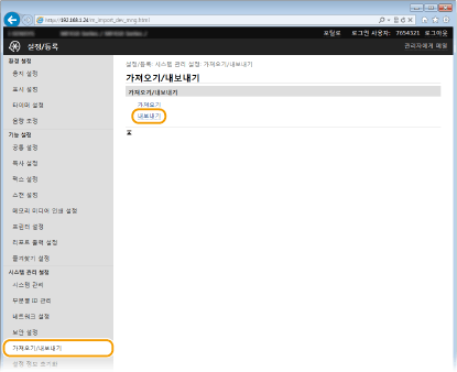 내보내기 데이터를 암호화하려면 최대 32자의 비밀번호를 입력합니다. [확인입력]에 같은 비밀번호를 입력합니다. [주소록] 또는 [설정/등록] 확인란을 선택한 경우, 암호화 비밀번호를 설정하지 않으면 데이터를 내보낼 수 없습니다.