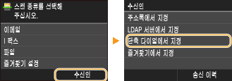 / 를 눌러 지정한 수신인을 전환할 수 있습니다. 삭제하려는 수신인을 표시하고 를 누릅니다. |