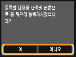 삭제할 설정을 선택합니다. <예>를 누릅니다.설정이 등록되면 수신인을 변경할 수 없습니다. 수신인을 변경하려면 설정을 삭제한 후, 다시 등록해 주십시오.