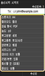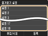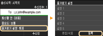 <이메일>/<I 팩스>/<파일> <즐겨찾기 설정> <편집/삭제> <편집> 또는 <삭제> 그런 다음 아래 단계를 따르십시오.설정을 편집하려면: