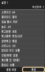 일단 설정, 설정 조합을 호출하면 필요에 따라 스캔 설정을 변경할 수도 있습니다.