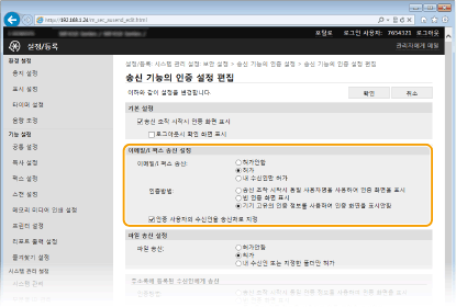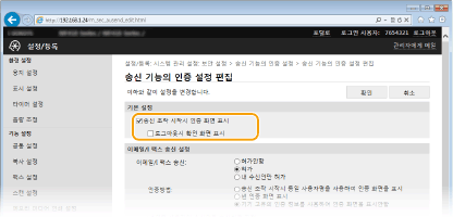 [송신 조작 시작시 동일 인증 정보를 사용하여 인증 화면을 표시]