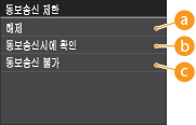 <동보송신시에 확인> 또는 <동보송신 불가>를 선택합니다.