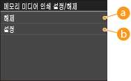 <메모리 미디어 인쇄 설정/해제>을 누릅니다.
